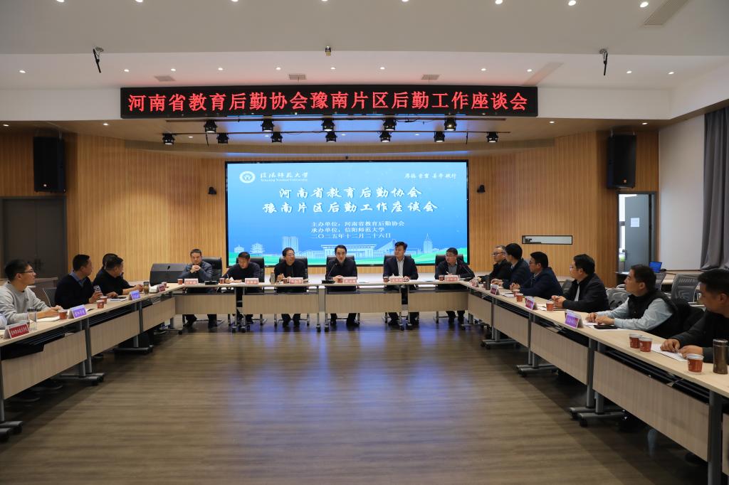 2025年12月26日,河南省教育后勤协会豫南片区高校后勤工作座谈会在信阳师范大学召开。河南省教育后勤协会副会长王和平、信阳师范大学副校长武治国出席会议,豫南片区各高校后勤部门负责人参加座谈。信阳师范大学后勤管理服务中心党总支书记郭红涛主持座谈会。